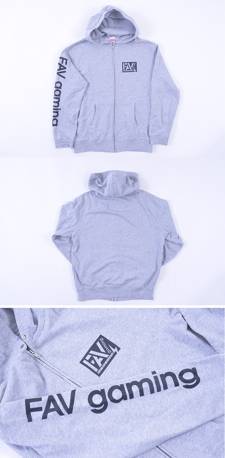 FAV gaming各部門の選手が実際に着用しているものと同じ仕様のチームパーカーです。