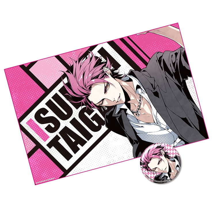 B's-LOG掲載描き下ろしイラストを使用した「石動大我」のマイクロファイバータオルと缶バッジのセットです。