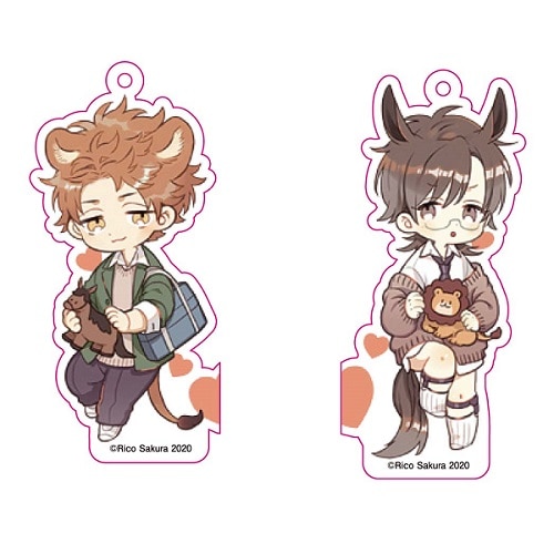 「けもみみシリーズ」より佐倉リコ先生描き下ろしデフォルメイラストを使用した、くっつきアクリルキーホルダーが登場です!2つ合わせると、ハートが完成するペアグッズです。※2種セットの商品です。