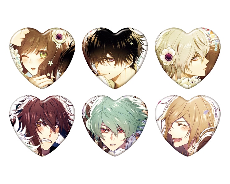 B's-LOG2018年1月号・8月号の描き下ろしイラストを使用した、ハート型のトレーディング缶バッジです。