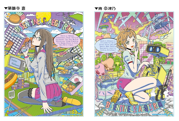 ヴァニラウェアにより1980年代ポップアートテイストで描かれた、薬師寺 恵と南 奈津乃のイラストをデザインした発色のよいアクリル製のイラストパネルです。