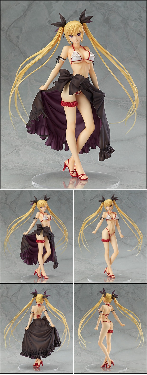 大胆すぎる水着姿で立体化しました。妖艶な佇まいのなか、白のフリル付きのビキニが可愛らしさも演出。大きなリボンの付いたパレオは取り外しが可能です。