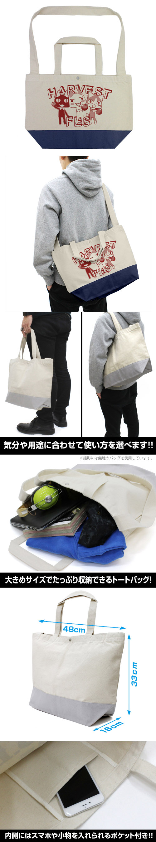 (約)縦33x横48xマチ16cm / 綿100%