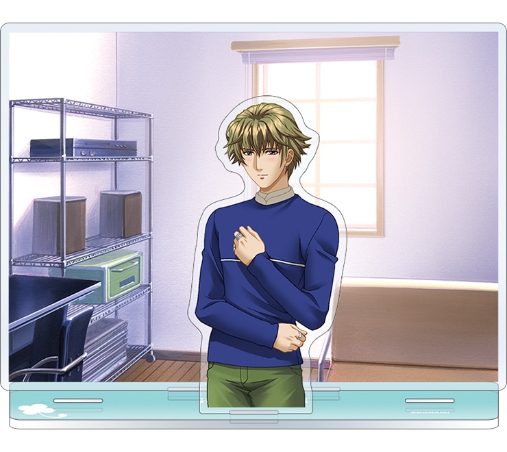『カレの部屋』の背景付きのアクリルジオラマです。複数集めて背景を変えたり、男の子たちを組み合わせて飾ることもできます。