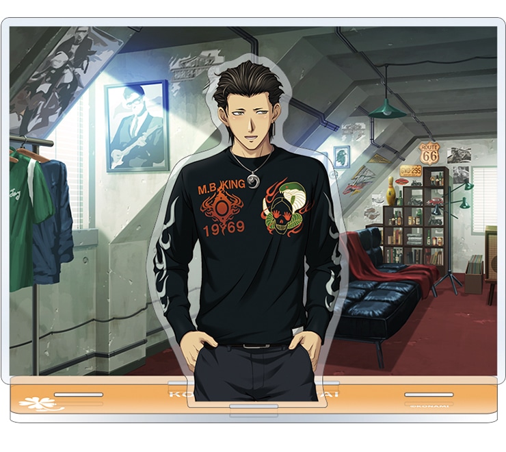 『カレの部屋』の背景付きのアクリルジオラマです。複数集めて背景を変えたり、男の子たちを組み合わせて飾ることもできます。
