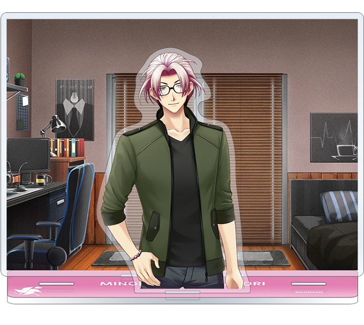 『カレの部屋』の背景付きのアクリルジオラマです。複数集めて背景を変えたり、男の子たちを組み合わせて飾ることもできます。