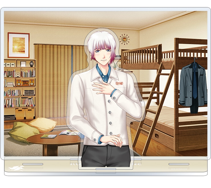 『カレの部屋』の背景付きのアクリルジオラマです。複数集めて背景を変えたり、男の子たちを組み合わせて飾ることもできます。