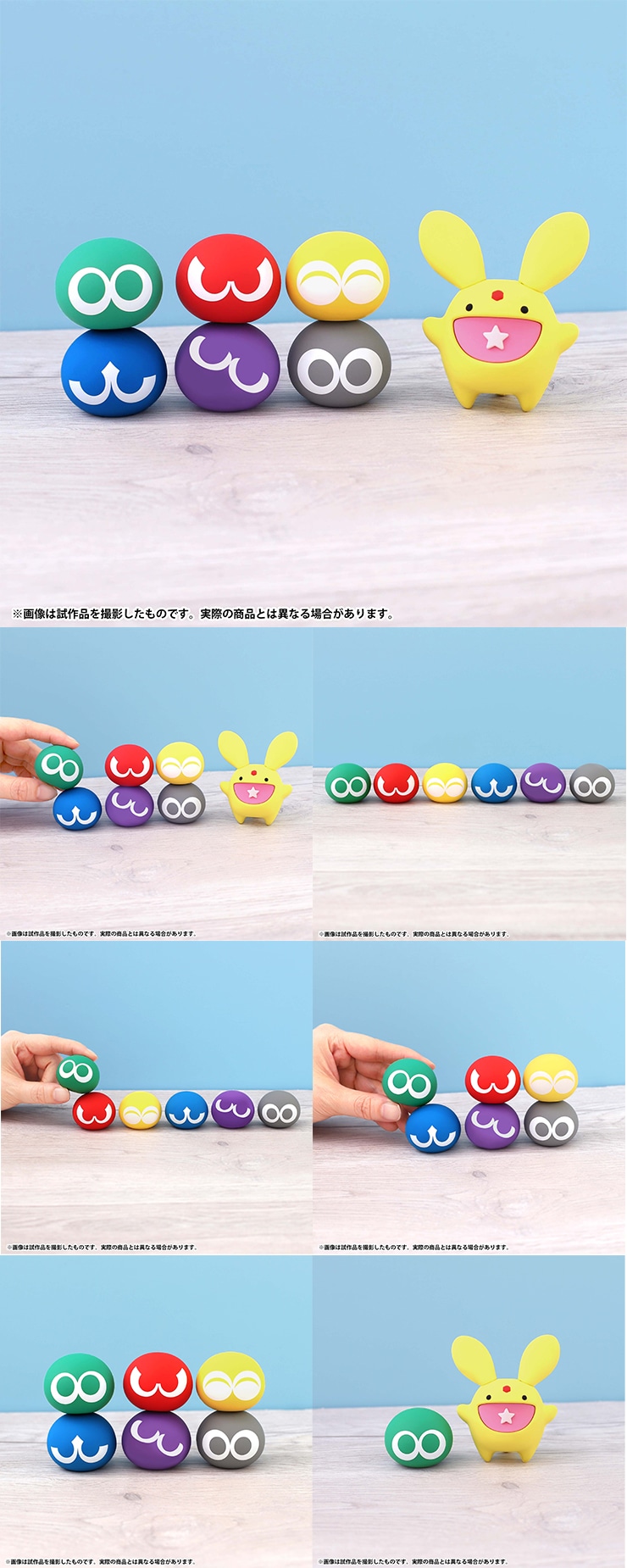 ぷよぷよ6種、カーバンクル1体がセットになったラバーフィギュアが登場!好きな組み合わせで飾って楽しめます。
