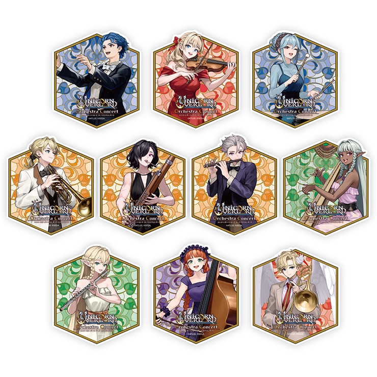 オーケストラコンサートのために描き下ろされたキービジュアルの各キャラクターを使用したフレークステッカー。
