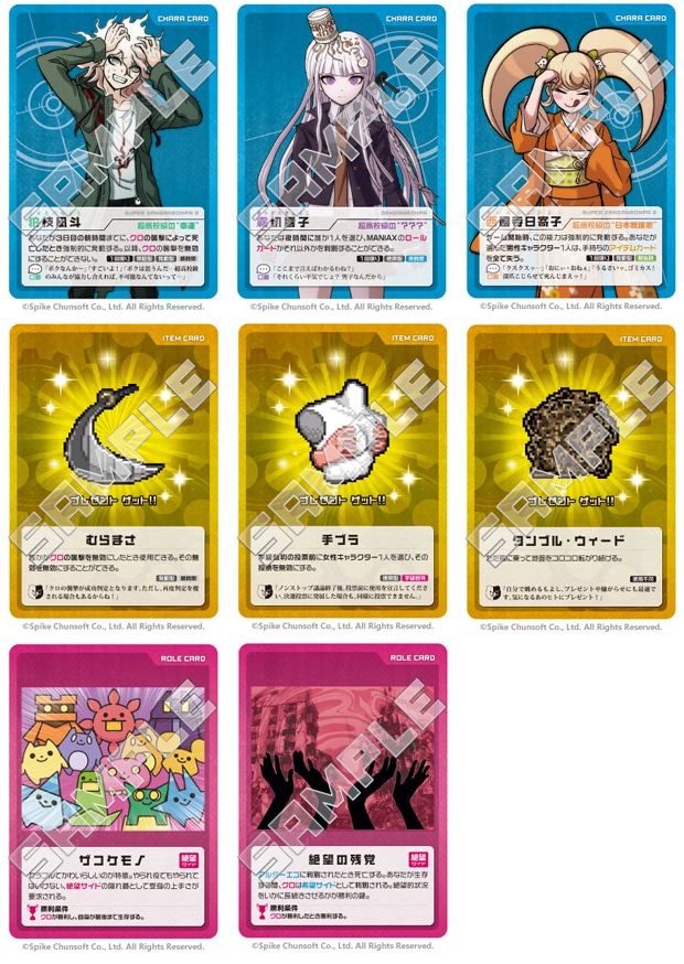 前作に収録しきれなかったキャラカードの追加や、『ダンガンロンパ1・2 Reload』におけるキーファクターをロールカードに反映したほか、カードを引く楽しさと、イジワルでお茶目な効果を追求したアイテムカードを新たにご提供いたします。