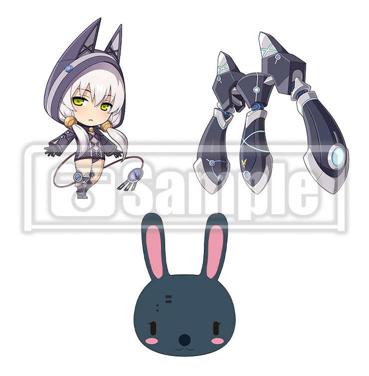 アルティナとクラウ=ソラスのデフォルメイラストに加え、アルティナ愛用の“黒兎トイカメラ”デザインを用いた連結アクリルチャーム3種セットです。