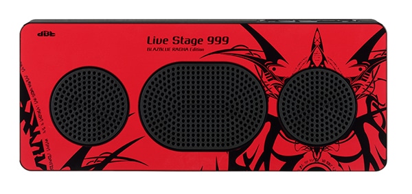 本商品は、Bluetoothスピーカー「Live Stage 999」に大人気の2D対戦格闘ゲーム「BLAZBLUEのキャラクター「ラグナ=ザ=ブラッドエッジ(RAGNA=THE=BLOODEDGE)」をイメージしたカラーと同キャラクターのデザインを採用し、さらに特別限定ステッカーを配しています。