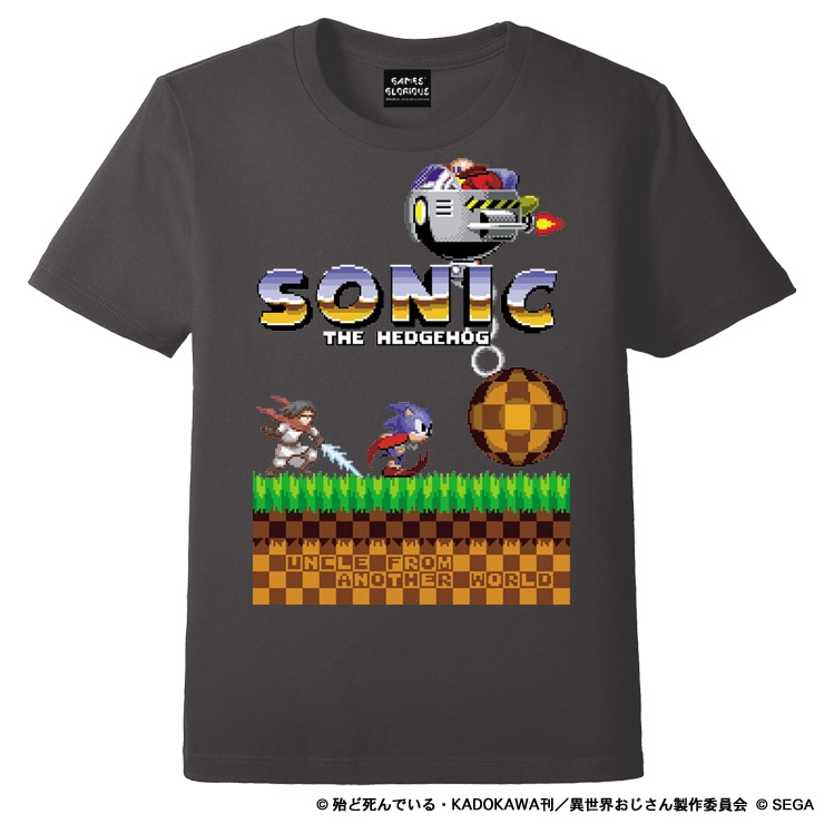 異世界おじさんの主人公が大好きなソニックが同じゲーム画面で共闘するコンセプトとしたTシャツデザインです。新色デザインで完全数量限定!