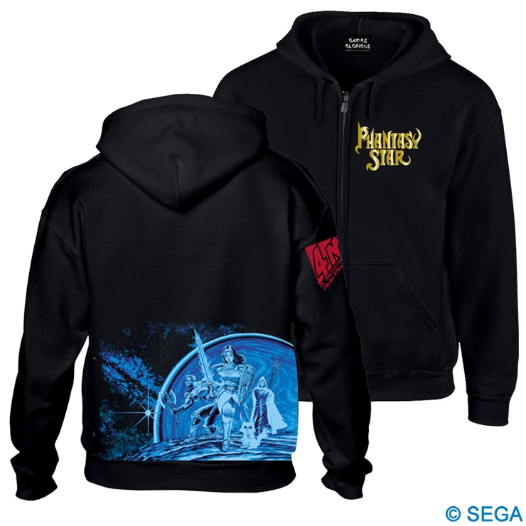 1987年に発売されたセガ・マークIII用SFファンタジーRPG「ファンタシースター」の1作目をフィーチャーしたジップアップパーカーです。