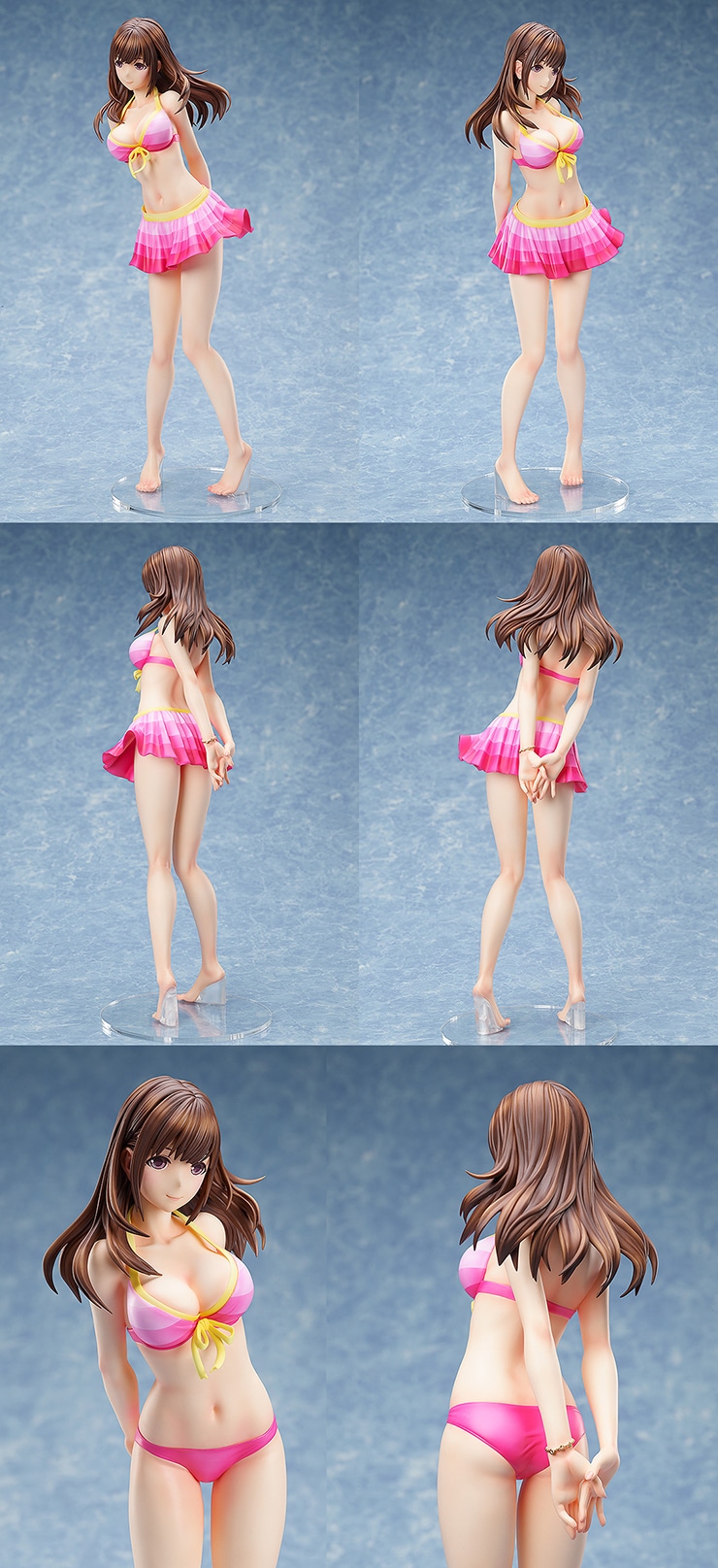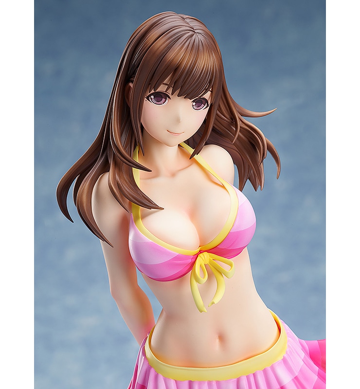 コスチュームは公式イラストをもとに、華やかなグラデーションが施されたピンクのセパレート水着を再現しました。全高約410mmの大ボリューム。ロングのヘアスタイルでじっとアナタを見つめるネネさんから目が離せません。