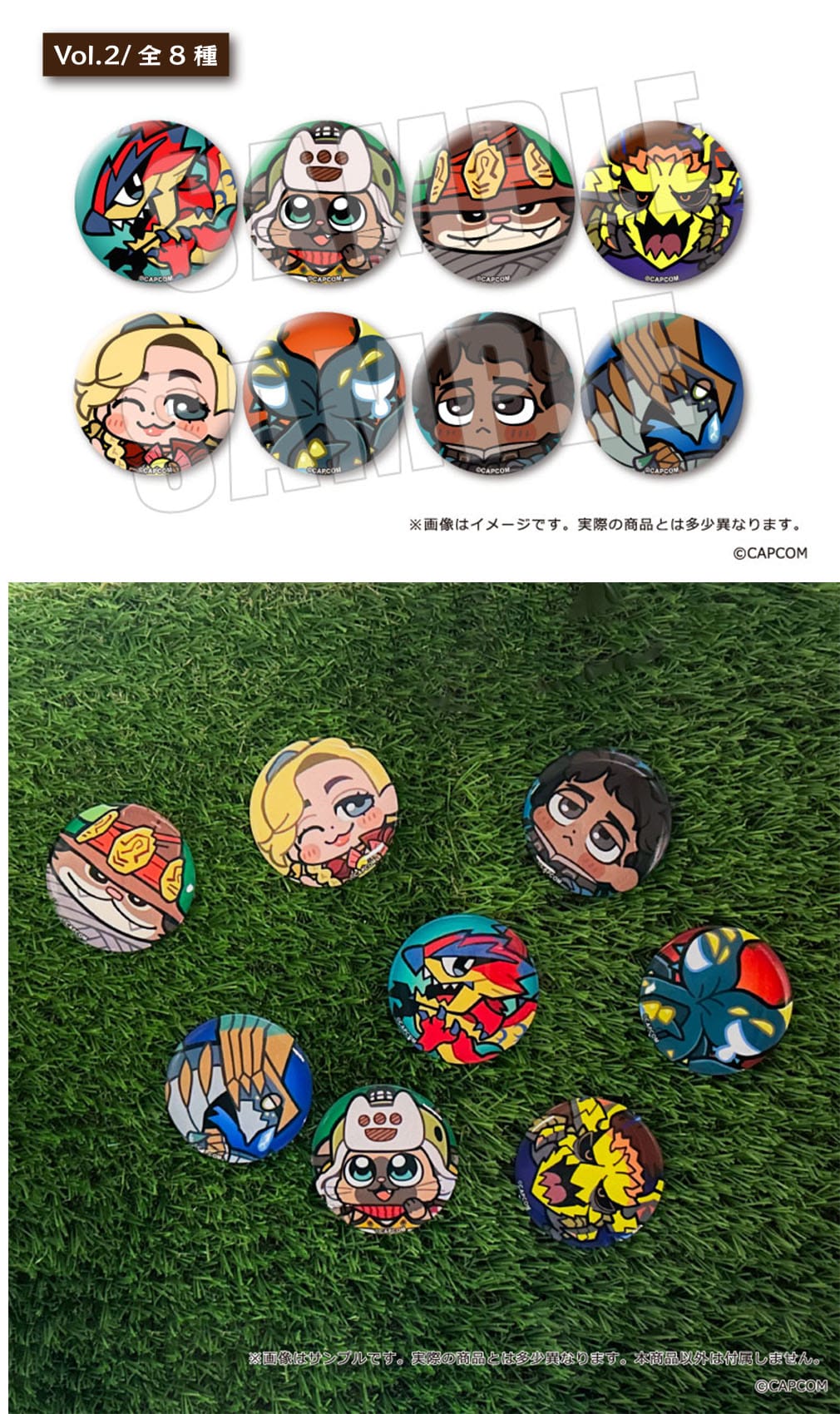 『モンスターハンターワイルズ』より、大川ぶくぶ先生描き起こしキャラクターとモンスターのカンバッジが登場!
