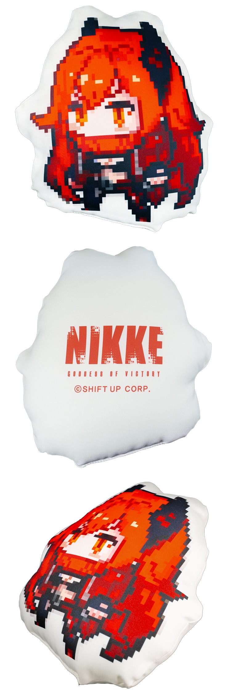 「MEMORY OF GODDESS」のドットイラストを使用したダイカットクッション。さらっとした気持ちいい手ざわりで、思わず抱きしめたくなるサイズ感。