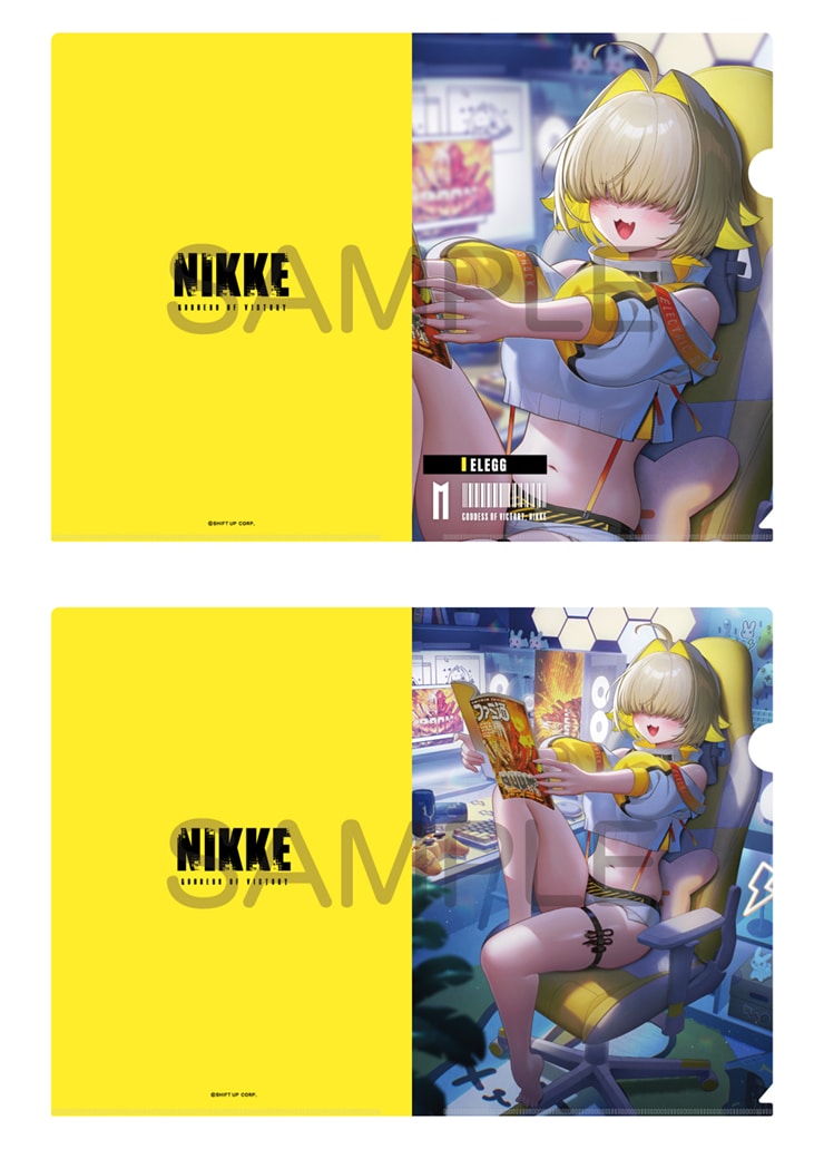 ファミ通を読みふけるエレグの描き下ろしイラストをモチーフにしたクリアファイル2枚組セット。