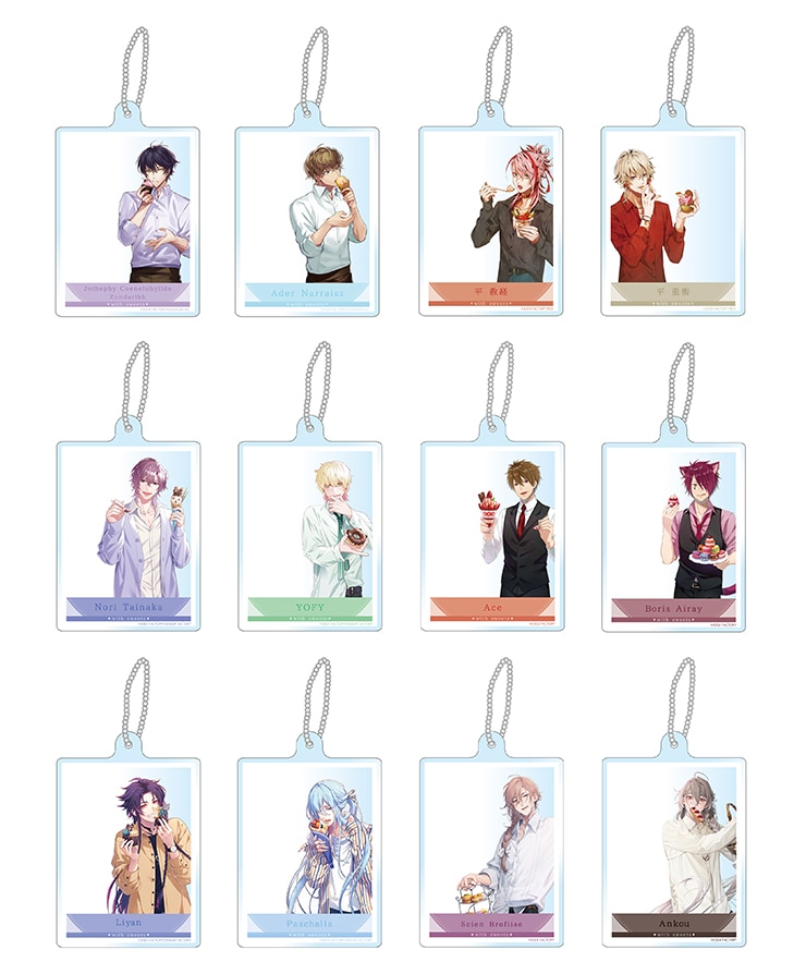 オトメイトキャラクター描きおろしグラビア企画、“with sweets”シリーズから、 B's-LOG本誌2023年8月号~2024年1月号掲載の、全12キャラクターを楽しめるアクリルキーホルダーです。