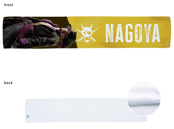 「パイレーツスタイル」の真島のビジュアルと「真島のマジ祭り」開催地である名古屋の名称が入ったマフラータオルです!