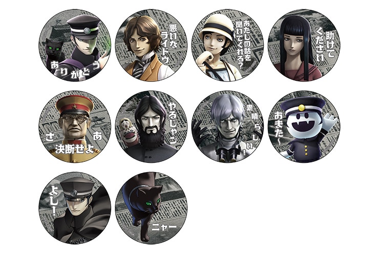 『RAIDOU Remastered: 超力兵団奇譚』のキャラクターイラストを配したトレーディングヒトコト缶バッジ(全10種)です。