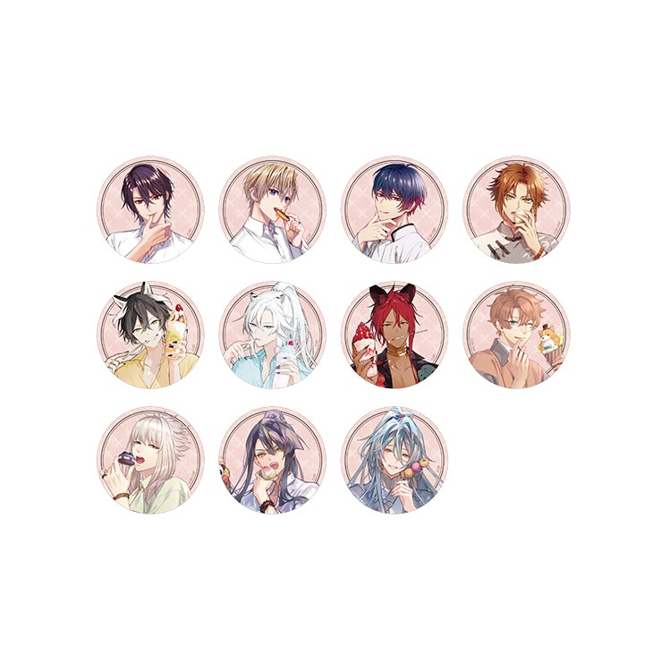 オトメイトのキャラクター描きおろしグラビア企画、“with sweets”シリーズから、B's-LOG本誌2024年10月号~2025年2月号掲載の全11キャラクターを楽しめる直径56mmのトレーディング缶バッジVol.3です。
