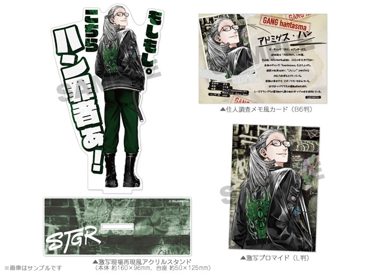 その際に激写したアドミゲス・ハンの「ブロマイド」と、激写現場の再現風「アクリルスタンド」、住人たちを調べた際の「調査メモ風カード」をセットにした「住人調査キット」です。
