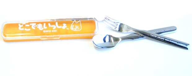 トロと一緒にご飯タイム。コンパクトに持ち歩けるスプーンとフォークセット。ランチボックスとお揃いにしてもかわいいね。