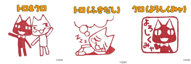 手帳や日記を自分だけのデザインにしたり、手紙などに押してもかわいくて喜ばれること間違いなし♪ありがとニャ!スタンプもあるよ。"