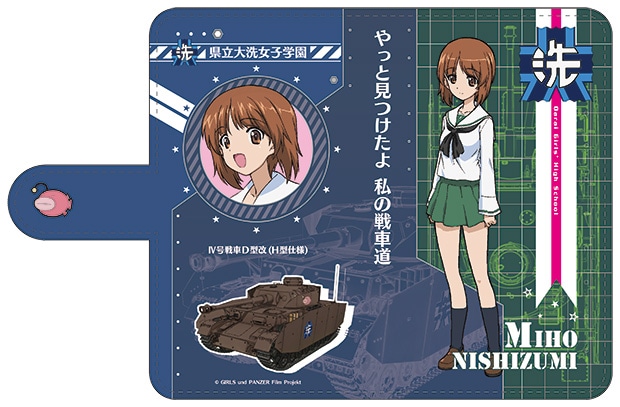 登場キャラクター 62名の印象的なセリフと共に、搭乗戦車やイラストをデザインした手帳型スマホケース。
