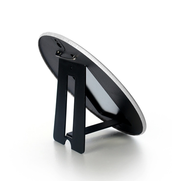 背面にはピンとスタンド、壁掛けパーツが付属し、立てかけたり壁に掛けてお使いいただけます。