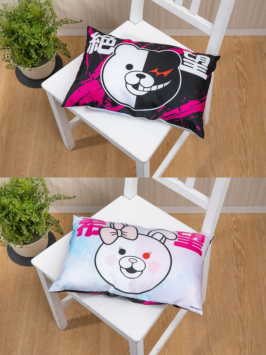 片面に「希望」、もう一方の面に「絶望」のデザインをあしらったクッションです。