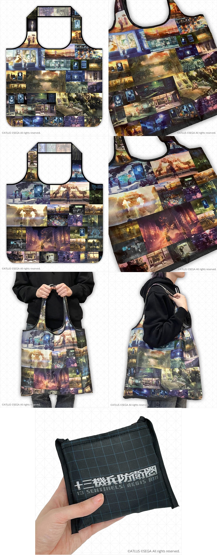 アトラス×ヴァニラウェアがタッグを組んで放つ快作SFアドベンチャーゲーム『十三機兵防衛圏』。作中すべての場面がアートとも呼べる美しい本作のビジュアル、その60枚を越えるシーンをレイアウトし、エモーショナルなエコバッグにいたしました。このエコバッグ1枚で、誰しもが心打たれたであろうエピソードの数々を堪能できます。厚手で丈夫な素材を採用しており、大きめなサイズはスーパーなどの買い物にもピッタリ。折りたたんで内側のポケットに収納し、手のひらサイズにすることも可能なので、実用性も抜群です。