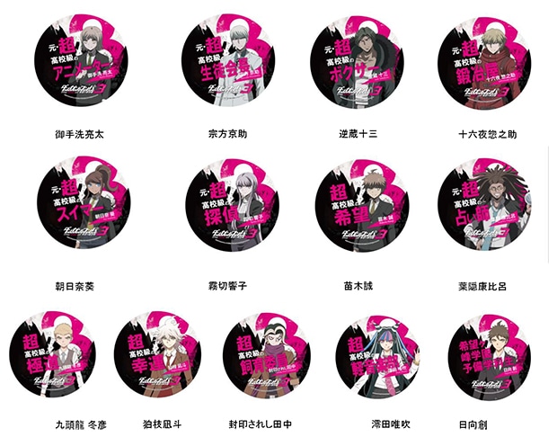 御手洗亮太/宗方 京助/逆蔵十三/十六夜惣之助/朝日奈葵/霧切響子/苗木誠/葉隠康比呂/九頭龍冬彦/狛枝凪斗/封印されし田中/澪田唯吹/日向創