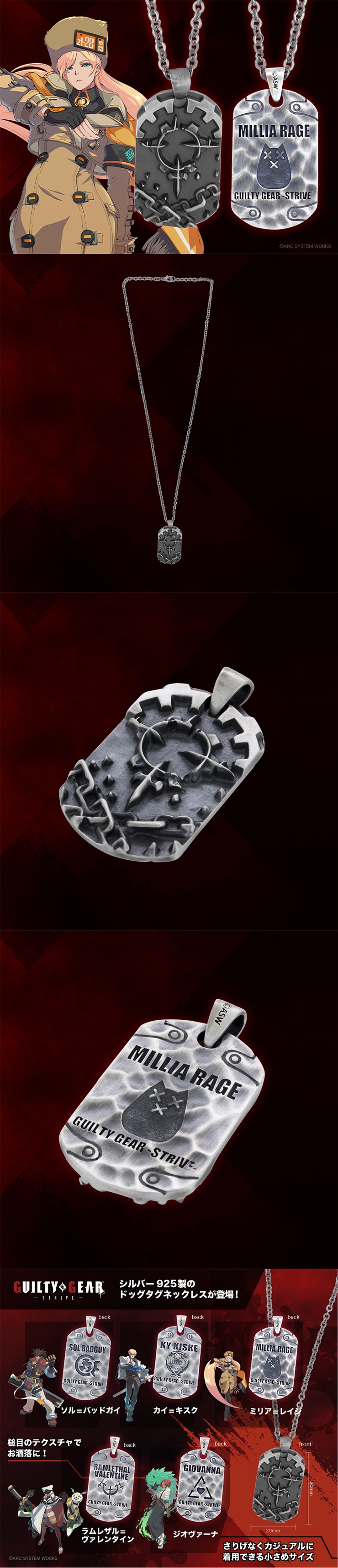 シリーズ最新作『GUILTY GEAR -STRIVE-』より、シルバー925製のドッグタグネックレス全5種類が登場!