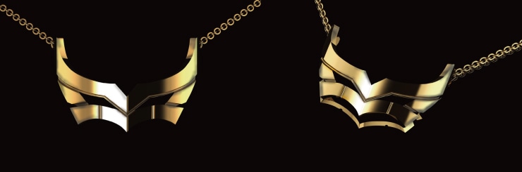 マグス・クラウンが着けている仮面をモチーフにした、存在感のあるペンダントです。