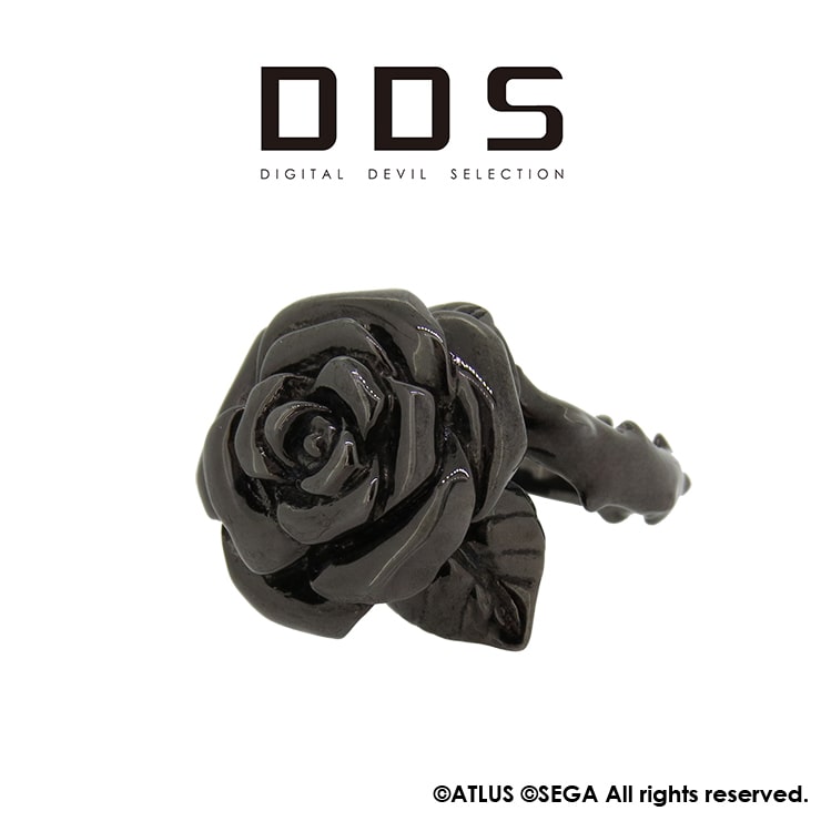 「真・女神転生III-NOCTURNE」に登場した、橘千晶が身に付けていた薔薇の指輪をモチーフとしたシルバーにルテメッキ加工を施したリング。妖しくも美しく力強い、その誇り高き黒の輝きは、橘千晶そのものだ。