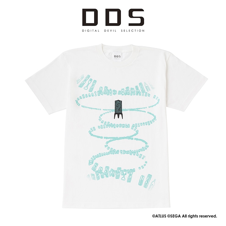 「真・女神転生III NOCTURNE HD REMASTER」にて主人公達の移動手段である「ターミナル」をモチーフに”転送”の瞬間を表現し、周囲に浮かぶ経文が螺旋構造を想起させるTシャツ。