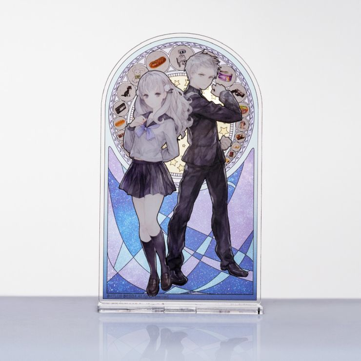 作品世界をイメージした背景デザインになっているのも魅力のひとつ。アクリルは透明・半透明加工を施しており、飾るシーンや光の加減によって、その表情はステンドグラスのようにさまざまに変化します。
