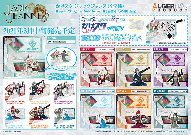 株式会社アルジャーノンプロダクトオリジナルブランド "書いて""消せる"アクリルメモスタンド『かけスタ』より『ジャックジャンヌ』が登場!