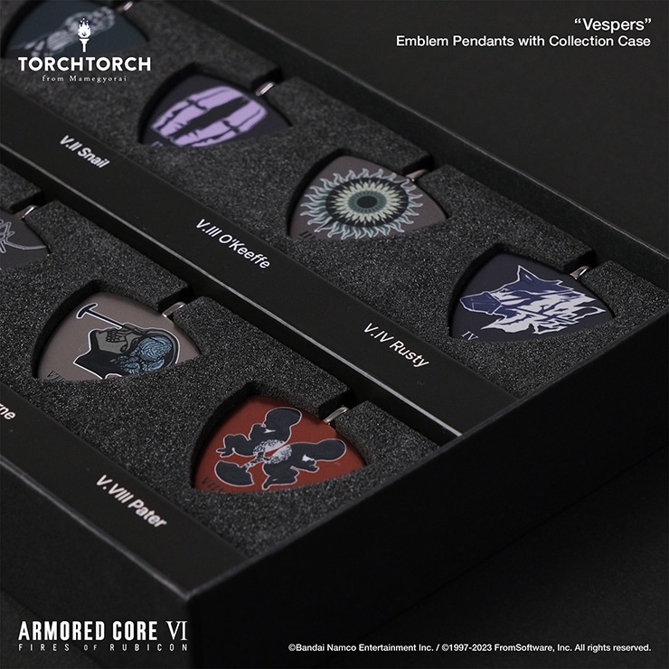『ARMORED CORE VI FIRES OF RUBICON(以下ACVI)』より、“ヴェスパー部隊”メンバーのエンブレムペンダント「コレクションケース付属8種セット」が登場!