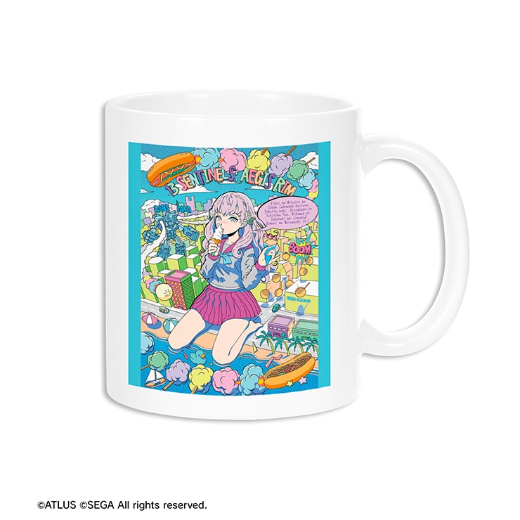 冬坂五百里のポップアート風イラストをあしらったマグカップです。