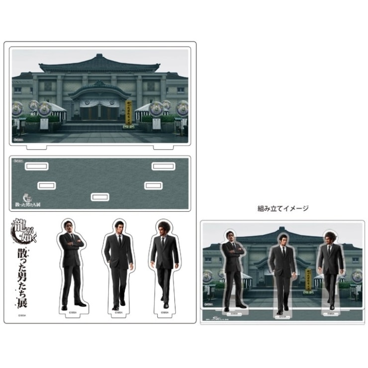 展覧会を記念し描き下ろされた桐生、春日、真島が散った男たち追悼式会場に向かう様子をイメージしたアクリルジオラマです。