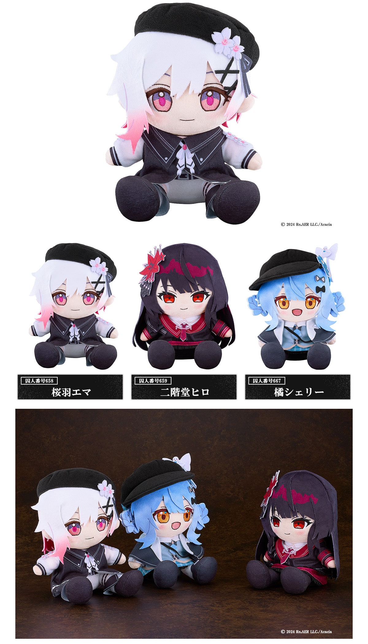 『魔法少女ノ魔女裁判』よりぬいぐるみ 桜羽エマ、二階堂ヒロ、橘シェリーが登場です。