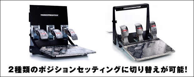 フルメタル構造のペダルセットは、スペーシングや高さを自由に設定可能です。また、プレイヤーの好みに合わせて2種類のポジションセッティング (フロアポジションのF1タイプ、もしくはサスペンデッドポジションのGT&ラリータイプ)に切り替えが可能。