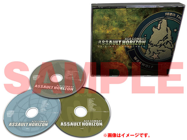 「エースコンバット アサルト・ホライゾン」のゲーム本編に流れる楽曲を全曲収録!アメリカ@シアトルで収録されたフルオーケストラと民族楽器のサウンドにエレクトリックサウンドが融合した今作の楽曲を余すところ無く聴けるオリジナルサウンドトラック。ファミ通DXパックでしか手に入らない合計145分にも及ぶ豪華3枚組仕様となっている。ブックレットにはサウンドに携わる小林 啓樹氏、濱本 理央氏、大久保博氏、Jesahm氏、日比野氏のライナーノーツも掲載。