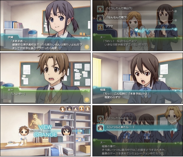 文研部5人の視点を切り替え、5人それぞれの視点でマルチ展開するストーリーを追う『五角形(ペンタゴン)ビューシナリオ』や『D.D.T(Dynamic Drama Transition)』によって、アニメで描かれた表情豊かなキャラクターたちが、ガシガシ動いて、豊富なキャラクターボイスと共に会話シーンを繰り広げる。