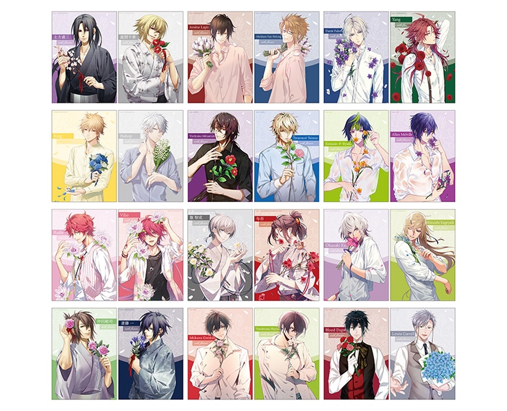 オトメイトのキャラクター描きおろしグラビア企画、“with flower”シリーズから、B’s-LOG本誌2022年5月号~2023年4月号に掲載された、各月掲載の2キャラクター1セットの2L判のトレーディングブロマイドです。1袋に2枚の2L判ブロマイドが入っております。全12種・24枚でコンプリート。