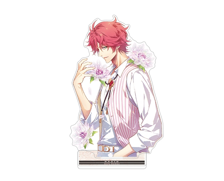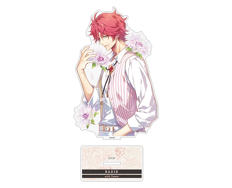 オトメイトのキャラクター描きおろしグラビア企画、“with flower”シリーズから、B’s-LOG本誌2022年11月号~2023年4月号に掲載された、全12キャラクターを楽しめる高さ約150mmのアクリスタンドです。
