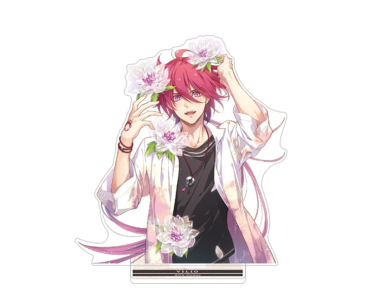 オトメイトのキャラクター描きおろしグラビア企画、“with flower”シリーズから、B’s-LOG本誌2022年11月号~2023年4月号に掲載された、全12キャラクターを楽しめる高さ約150mmのアクリスタンドです。